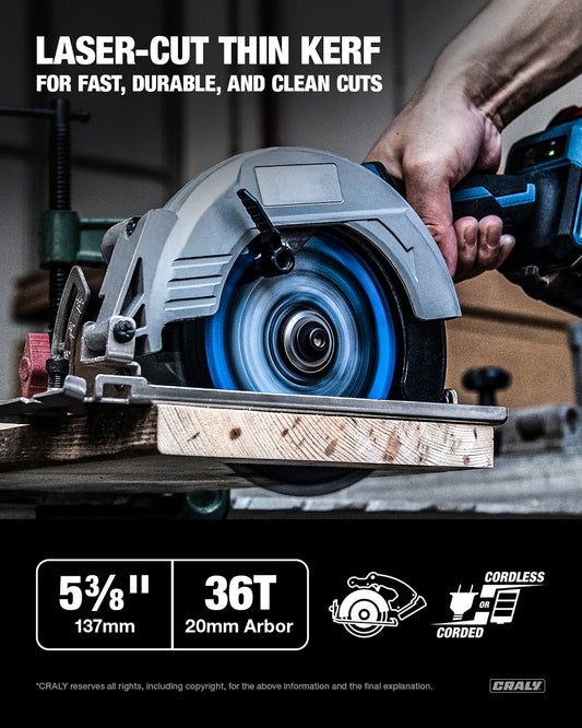 Wood — 5-3/8" 24&36T, Aluminum — 5-3/8" 50T, Arbor 20mm