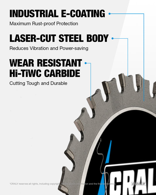 Wood — 5-3/8" 24T, Metal — 5-3/8"30T, Aluminum — 5-3/8" 50T, Arbor 20mm
